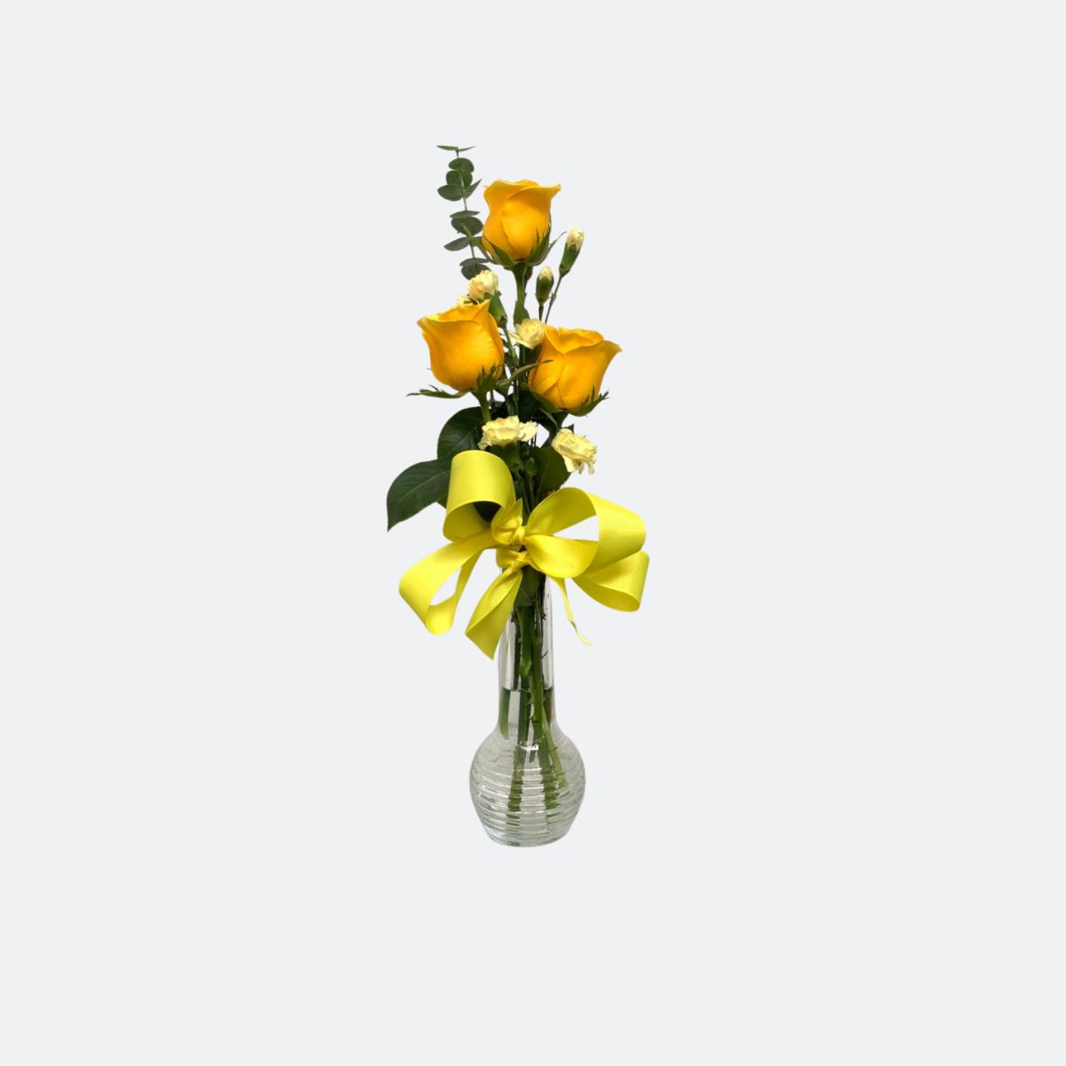 24 Rosas amarillas en florero de cristal